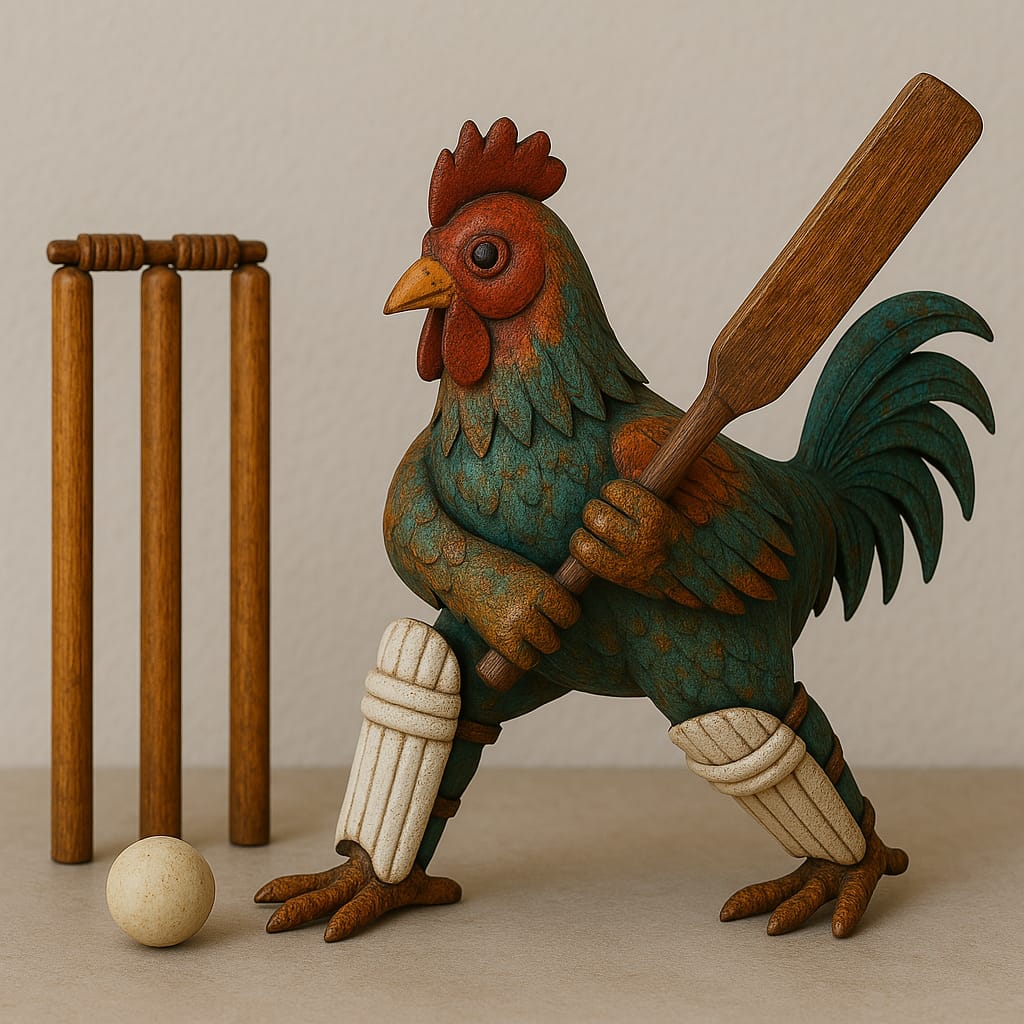 Yeh unique rooster cricket theme ke saath design kiya gaya hai – bat, ball aur wickets ke saath complete setup. Sports lovers aur cricket fans ke liye perfect collectible piece hai.