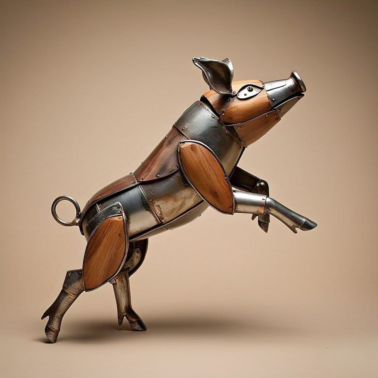 Modern Metal & Wooden Pig Sculpture – Artistic Decorative Figurine for Home & Office