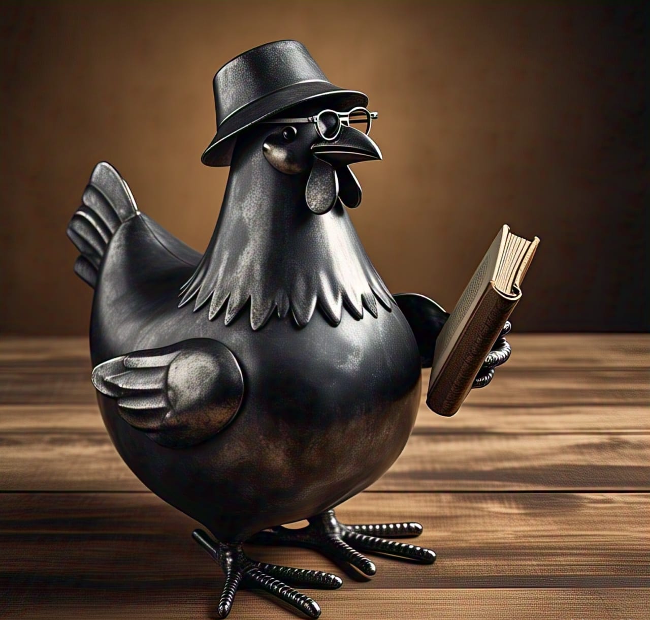 Vintage Scholar Rooster Reading Book Statue – Premium Metal Decorative Showpiece